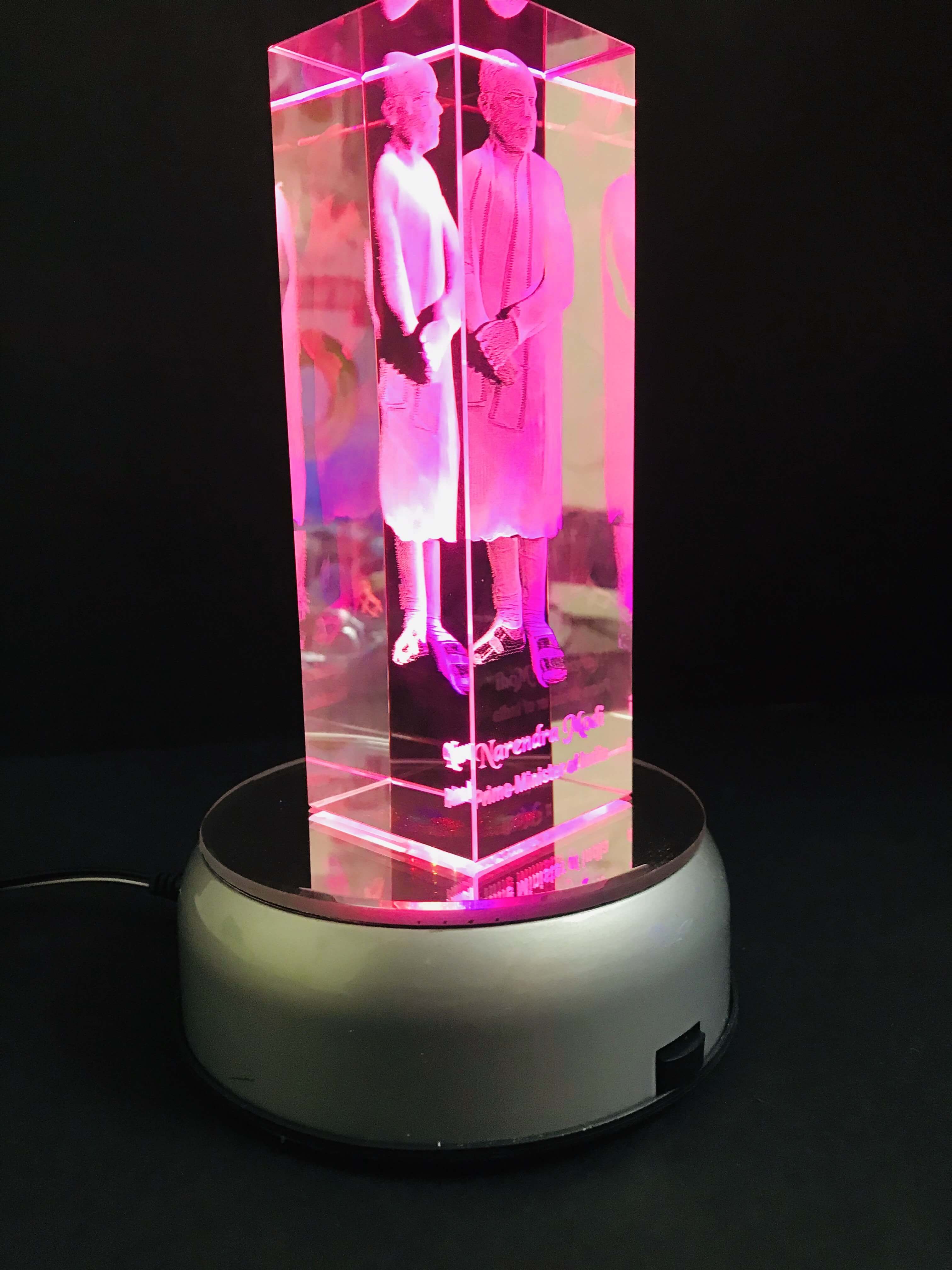 You can customize this product with your favorite picture and create beautiful memories, now engrave your loved ones or your beautiful photos adding a memory with Amazing Crystals, A LED base will be an Add on , which provides multicolored patterns in the crystals adding colors to the photo, you can place the crystal separately apart from LED base, these are most common gifts in return gifts, weddings, anniversary, birthdays.