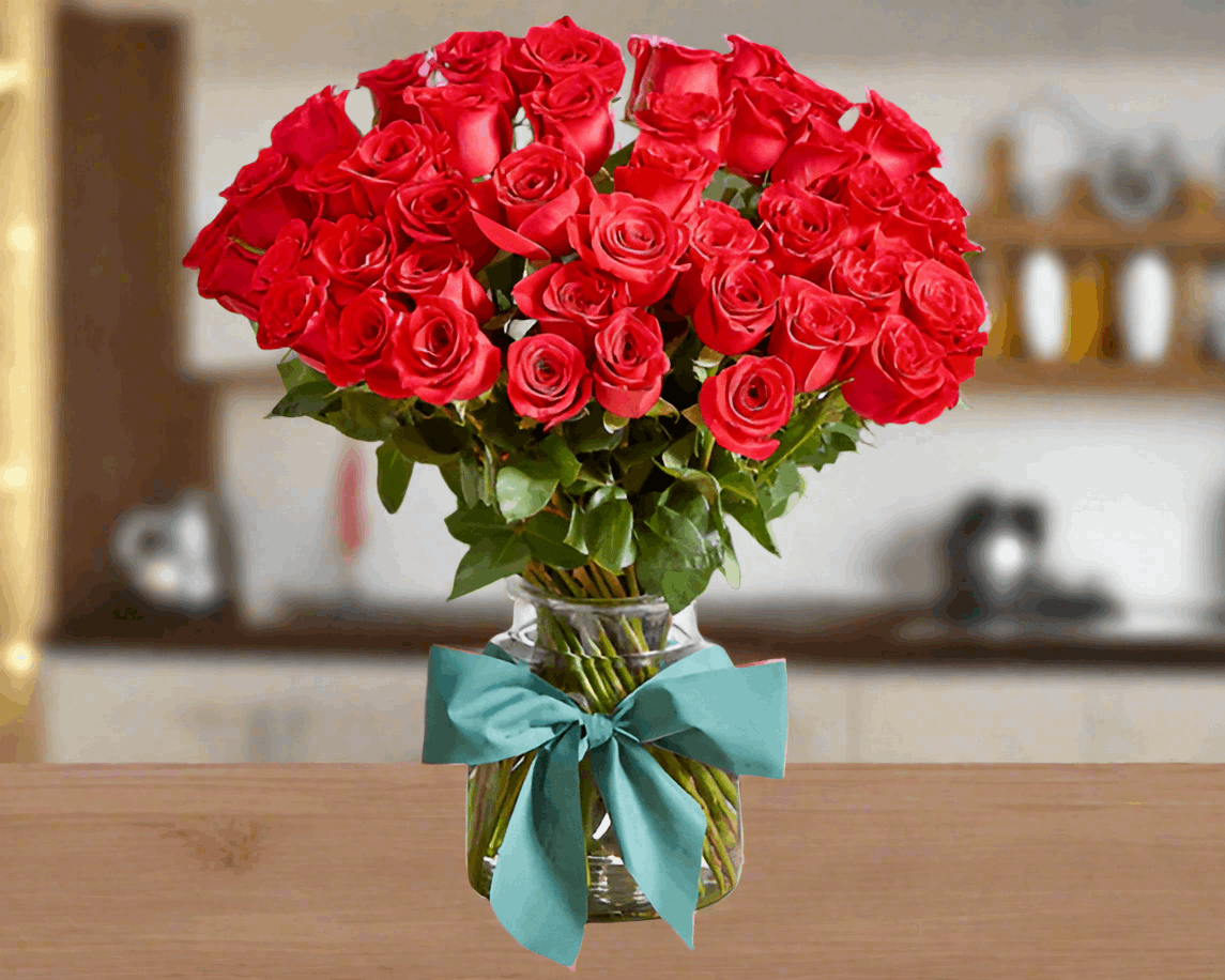 Say 'I love you' with this beautiful 50-bunch of Red Roses. Each flower is hand-picked to ensure quality, with deep red petals to signify eternal love. This is the perfect gift for any special occasion.
