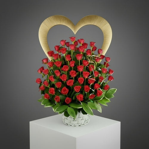 Red roses are beautifully arranged in a premium basket. This will be a perfect gift on every occasion. The grand look of the basket makes your special ones' day even more special.