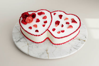 Gift/Order Valentine Decorated cake with red-colored flowers and beautiful petals of roses, and a heart-shaped design cake of white colour, perfect to gift someone on Valentine's Day, Wedding, Anniversary or any other special occasion.