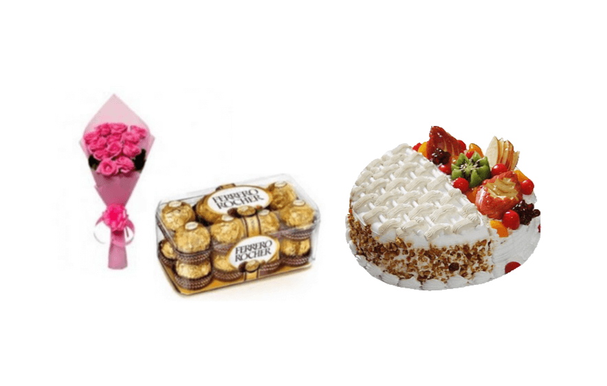 Order a combo of Cake, Ferrero Rocher, and a beautiful pink colored flower bouquet for your loved ones on an anniversary, wedding, Valentine's day, birthday or any other special occasion.