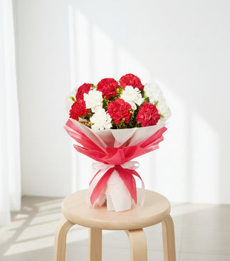 Order red and white carnations online and send them to India. Fresh flower delivery for birthdays, anniversaries, or special days.