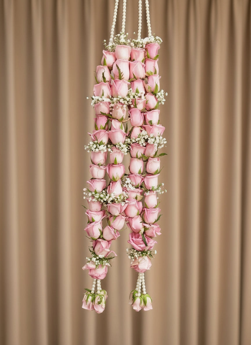 Stunning pink rose garland perfect for any occasion. Add your custom message and select your delivery date at checkout. Questions? Reach our support team at +918790604818 via WhatsApp or phone.